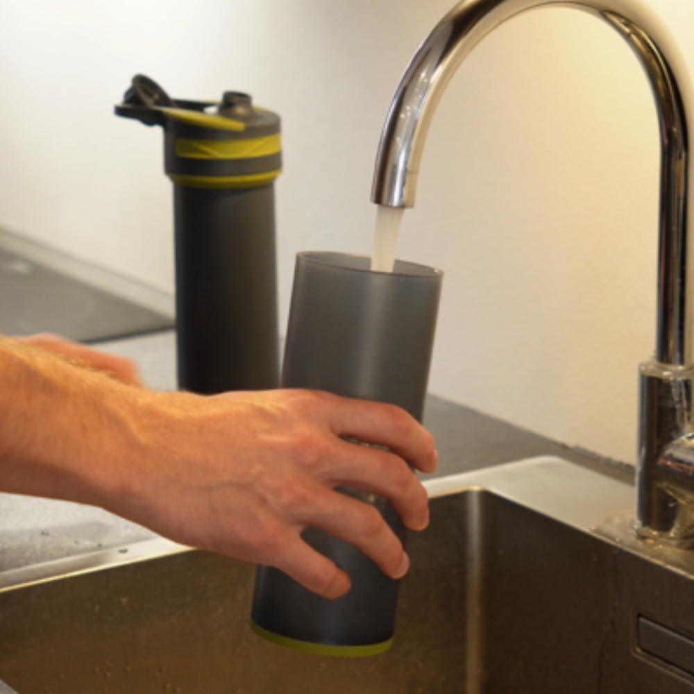 Kompakt og let design, der passer i enhver rejsetaske – gør dig uafhængig af plastflasker.