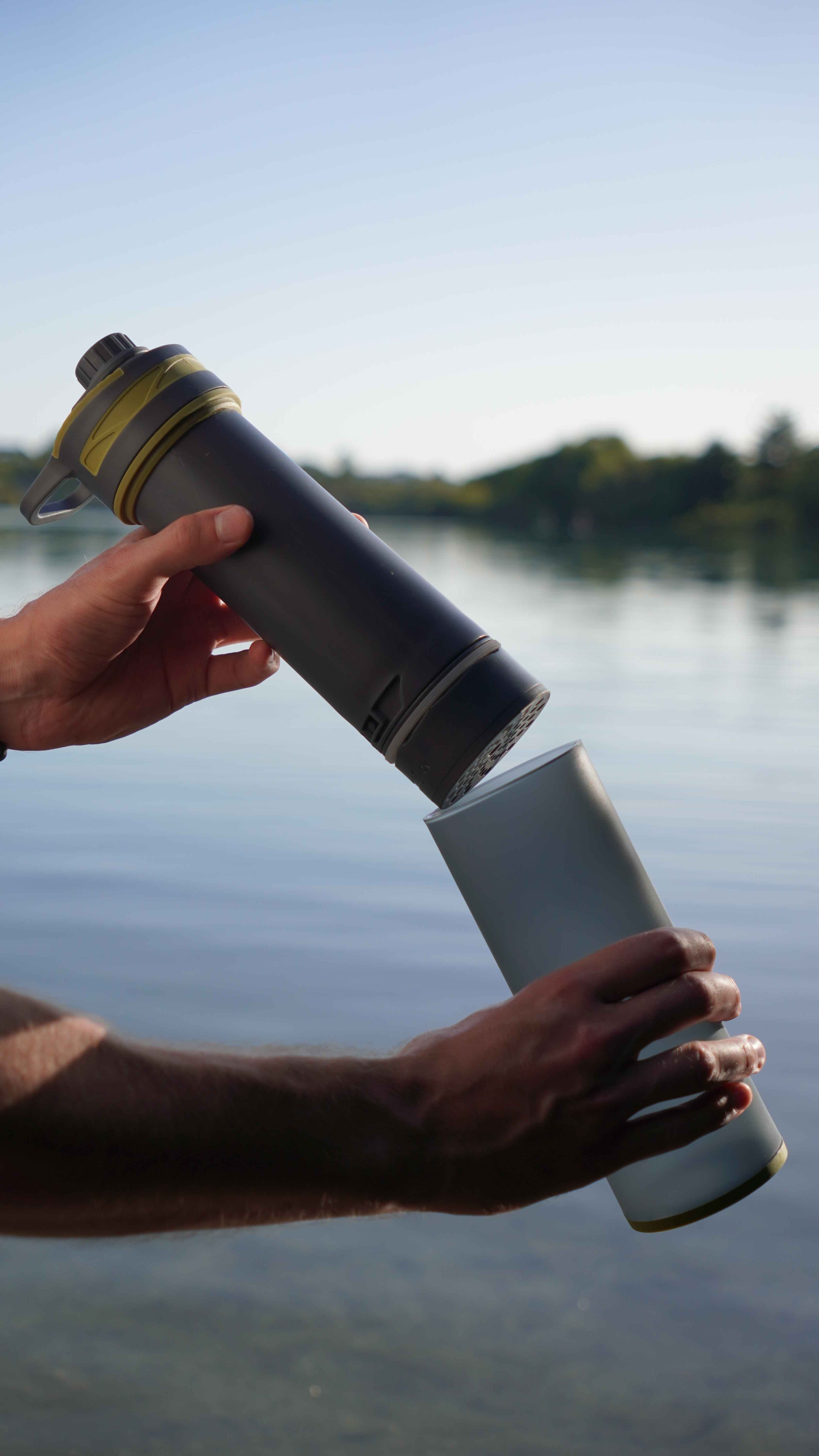 Hent vand fra enhver ferskvandskilde. Filtrer let, og nyd klart og forfriskende drikkevand direkte fra naturen.