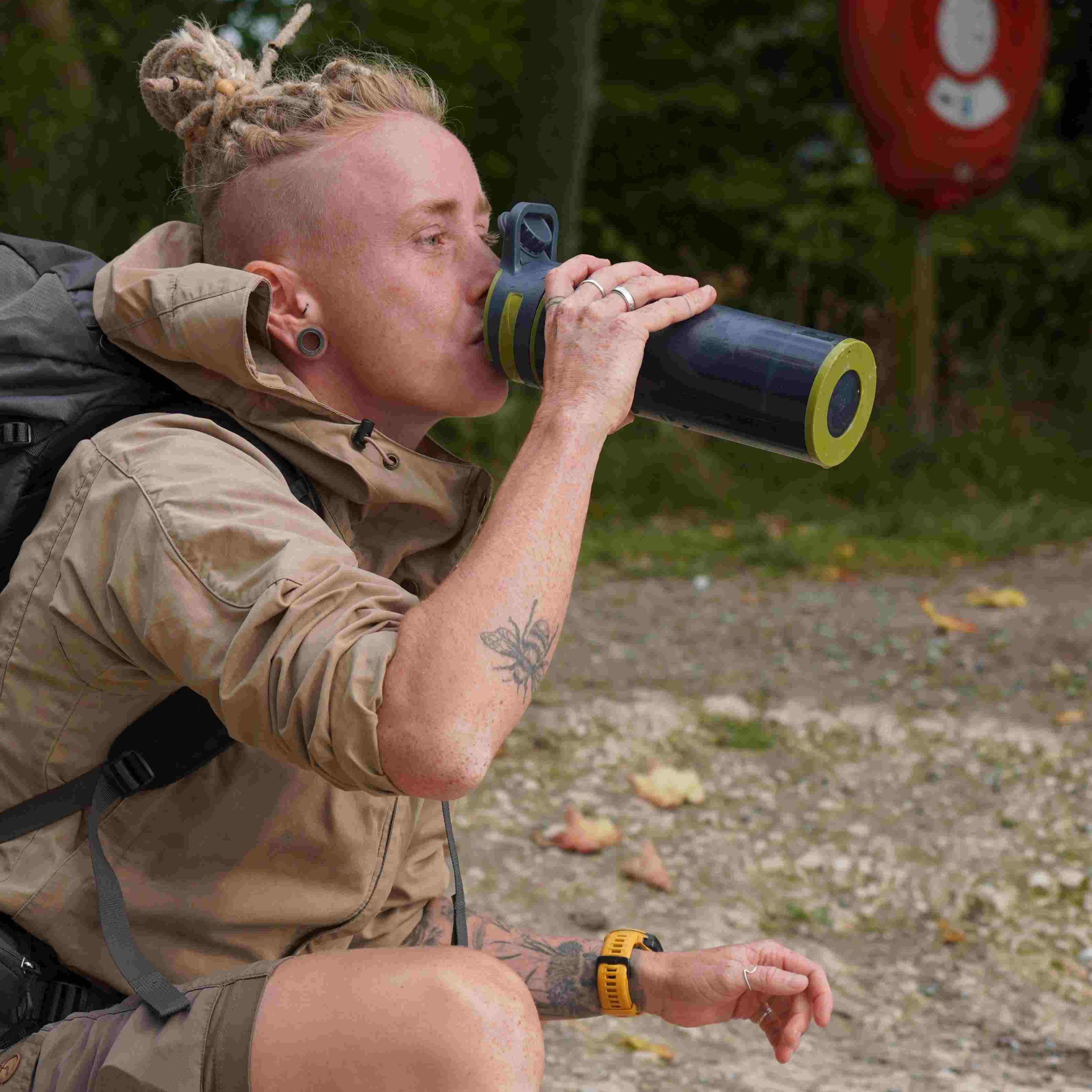 Med avanceret filtrering fjerner den 99,999% af bakterier, vira og tungmetaller, og den kan filtrere op til 2.000 liter vand før udskiftning af filteret. Perfekt til udendørs eventyr og rejser.