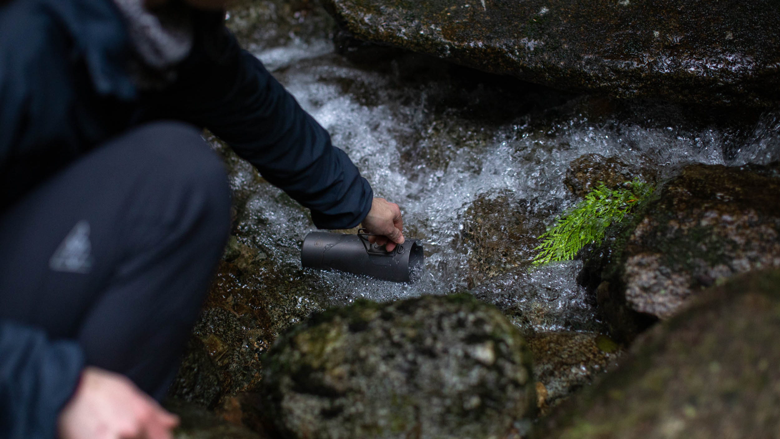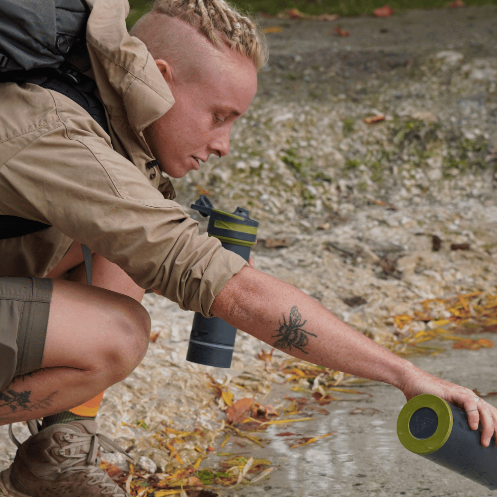 Vores BPA-fri AquaPress filtreringsflaske sikrer rent vand, uanset om det kommer fra mudrede bække, floder eller regnvand.